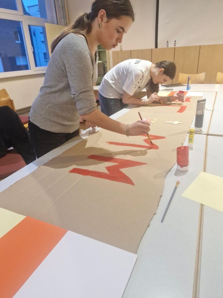 Schon die Vorbereitung zeigte: Hier geht es um mehr als nur Tore. Mit viel Kreativität entstanden selbstgemachte Fan-Utensilien und ein großes Banner mit den Buchstaben J, E und MM: für unsere Kirchengemeinden Johannes, Erlöser und Maria Magdalena. Gemeinsam wurde gemalt, gestaltet und gelacht.